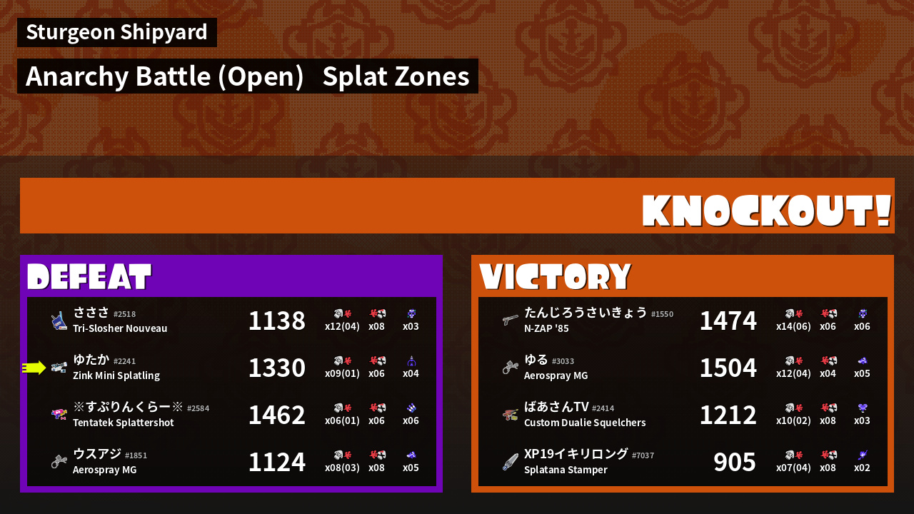 | Mode | Splat Zones - Anarchy Battle (Open) | ||