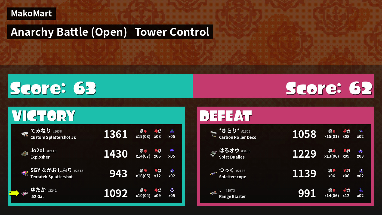 | Mode | Tower Control - Anarchy Battle (Open) | ||