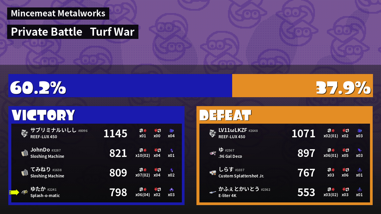 | Medals | #1 Super Jump Spot #1 Splat Assister #1 Damage Taker | ||