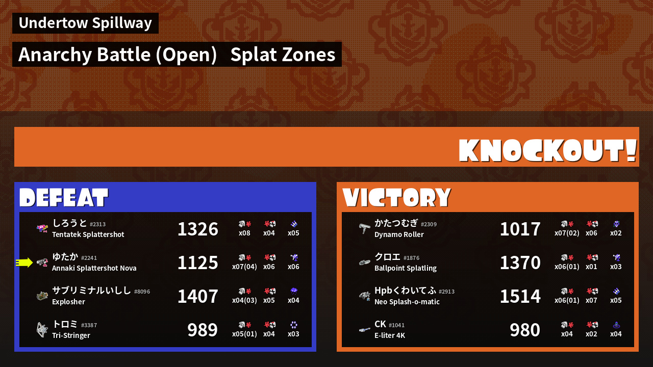 | Mode | Splat Zones - Anarchy Battle (Open) | ||