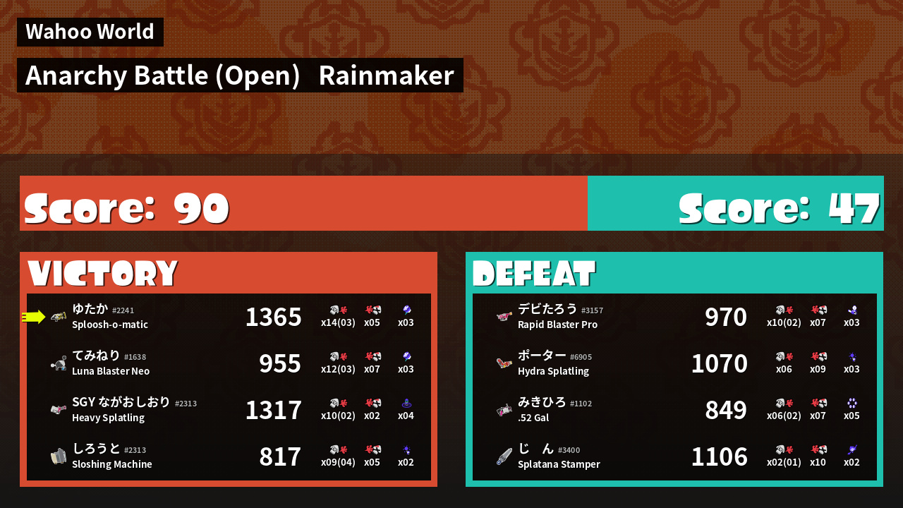 | Medals | #1 Overall Splatter #1 Score Booster #1 Turf Inker | ||