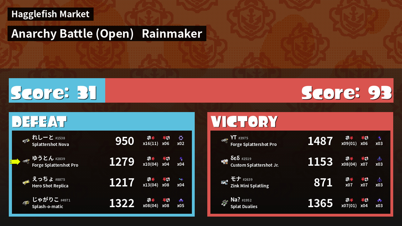 | Mode | Rainmaker - Anarchy Battle (Open) | ||