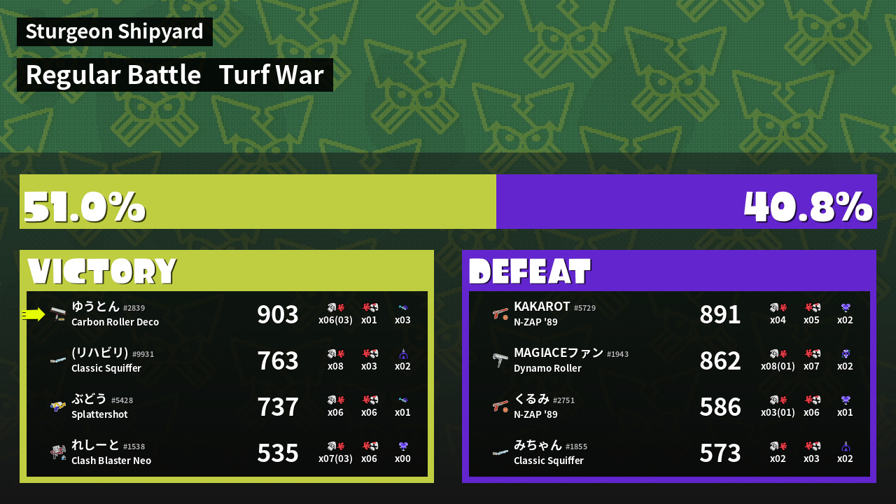 | Weapon | Carbon Roller Deco ( Burst Bomb / Trizooka) | ||