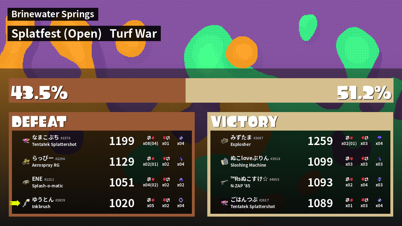 | Medals | #1 Popular Target #1 Enemy-Base Inker #1 Enemy Splatter | ||