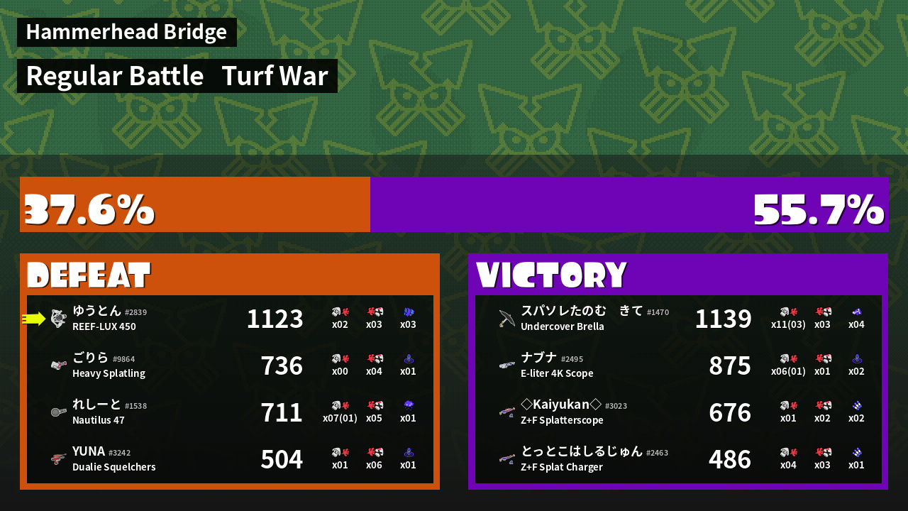 | Mode | Turf War - Regular Battle | ||