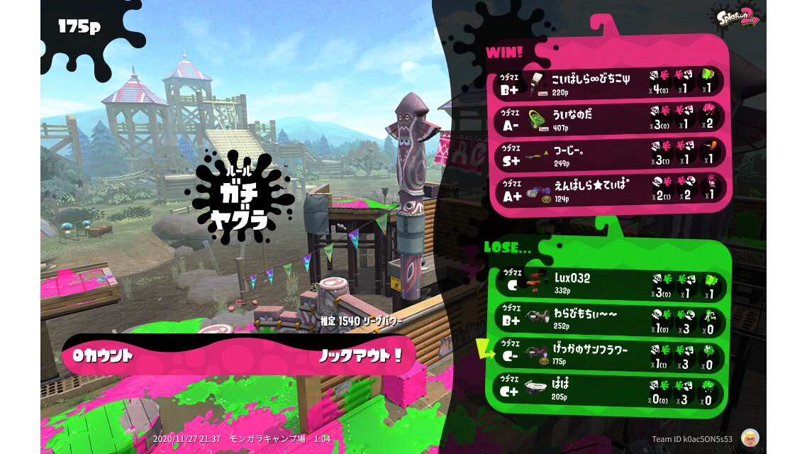 | Name | Weapon | Level | Rank | Inked | k+a/sp | k/d |