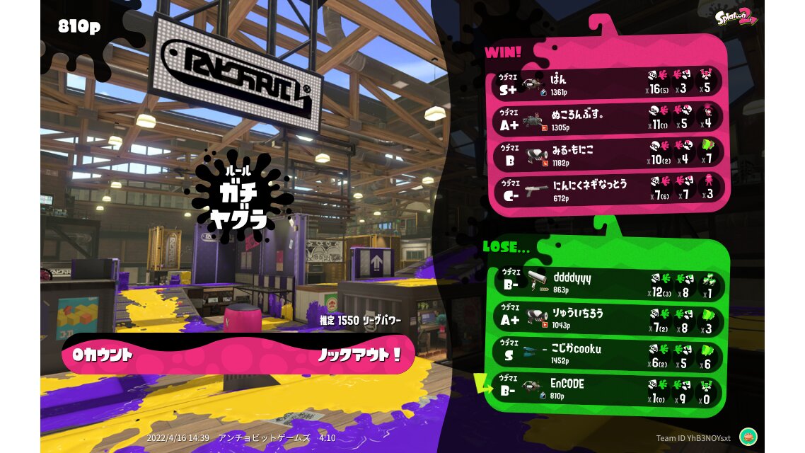 | Name | Weapon | Level | Rank | Inked | k+a/sp | k/d |