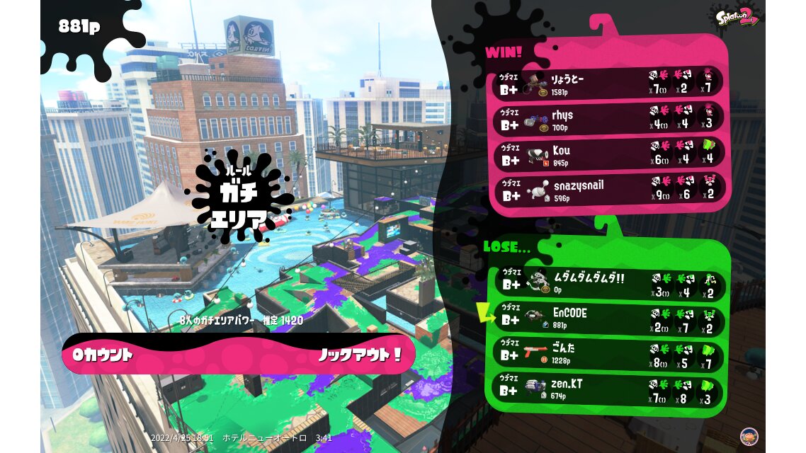 | Mode | Splat Zones - Ranked Battle | |||||||||||||||||||||||||||||||