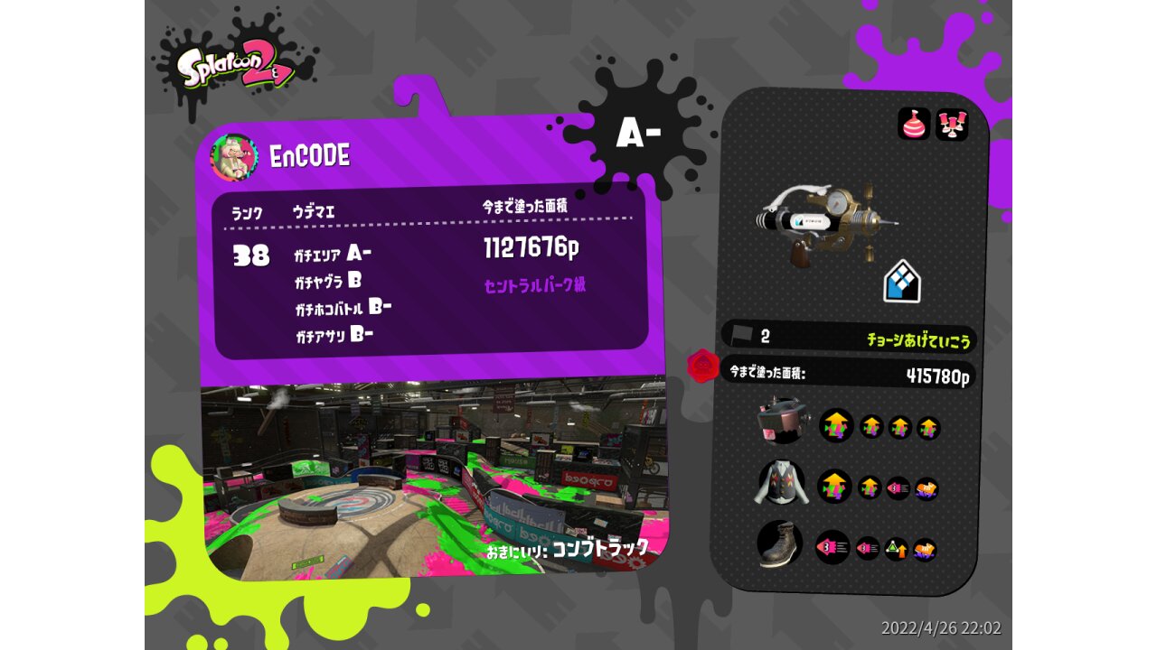 | Name | Weapon | Level | Rank | Inked | k+a/sp | k/d |
