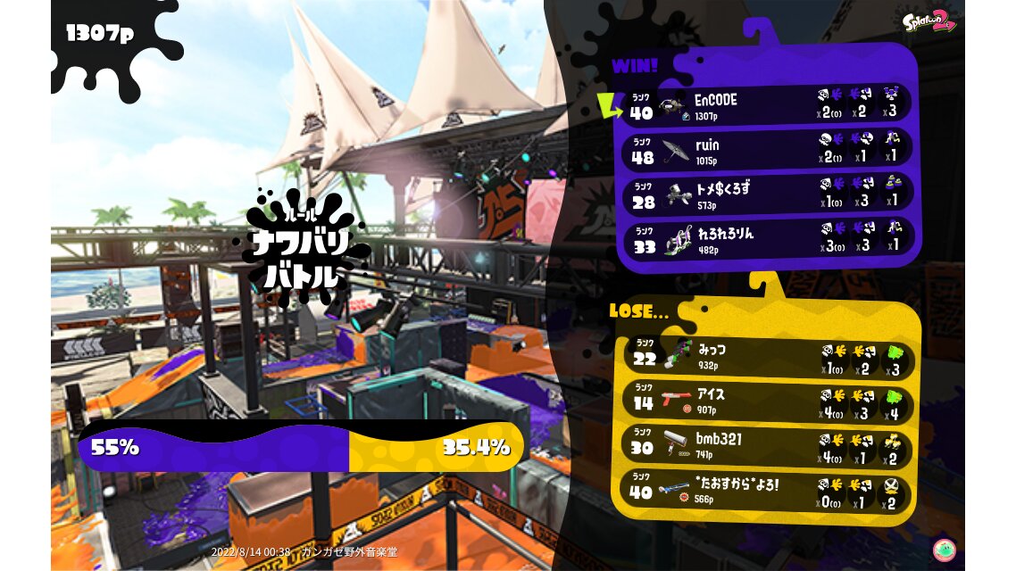 | Mode | Turf War - Regular Battle | |||||||||||||||||||||||||||||||