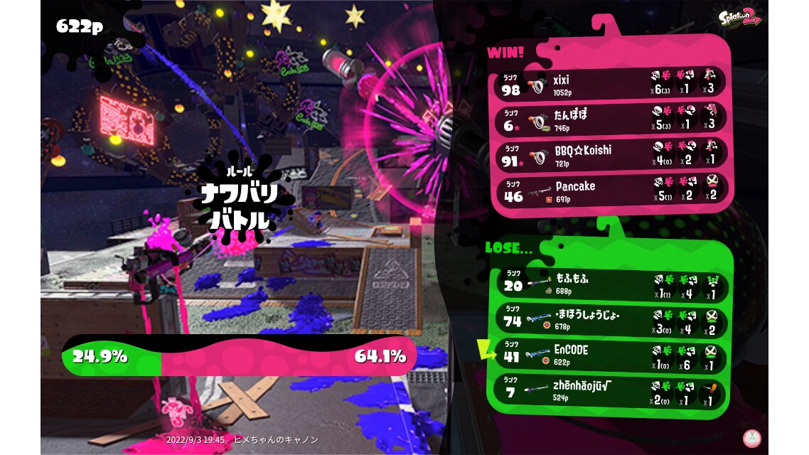 | Mode | Turf War - Private Battle | ||||||||||||||||||||||||||||||||||