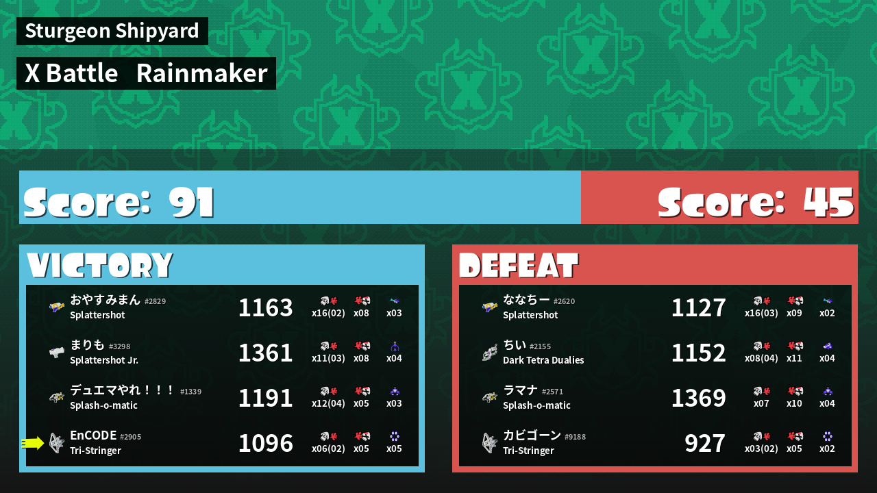 | Mode | Rainmaker - X Battle | ||