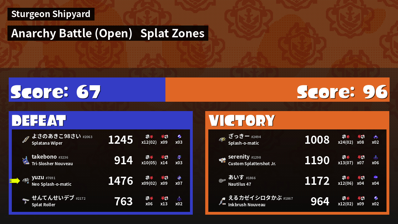 | Mode | Splat Zones - Anarchy Battle (Open) | ||