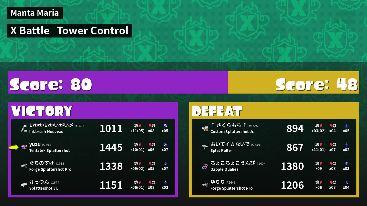 | Medals | #1 Turf Inker #1 Enemy Splatter #1 Damage Taker | ||