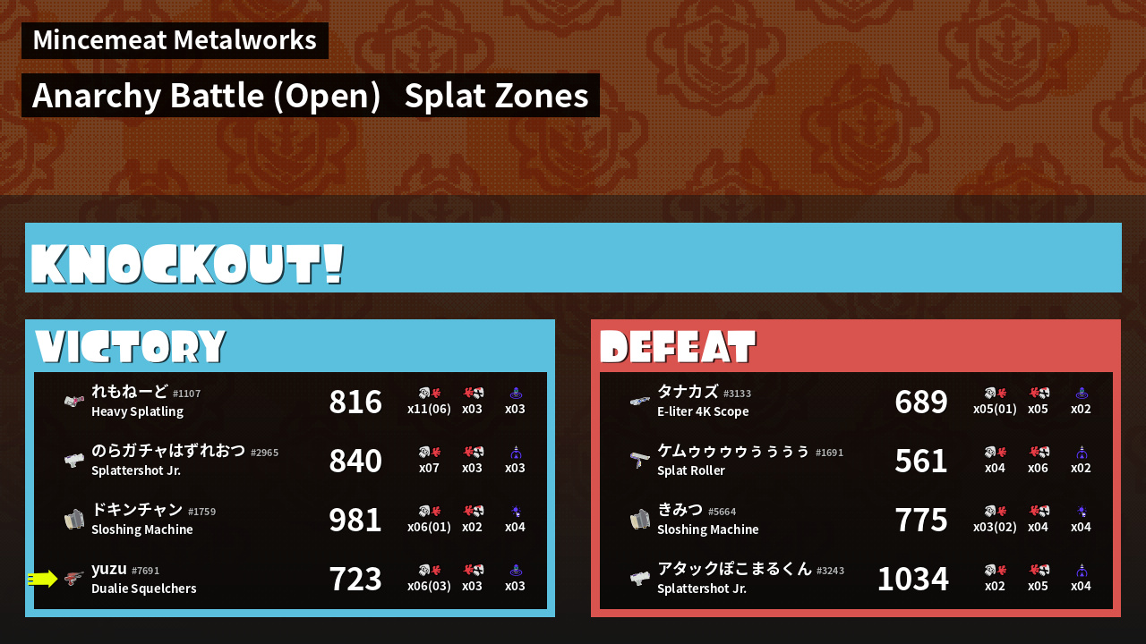 | Mode | Splat Zones - Anarchy Battle (Open) | ||