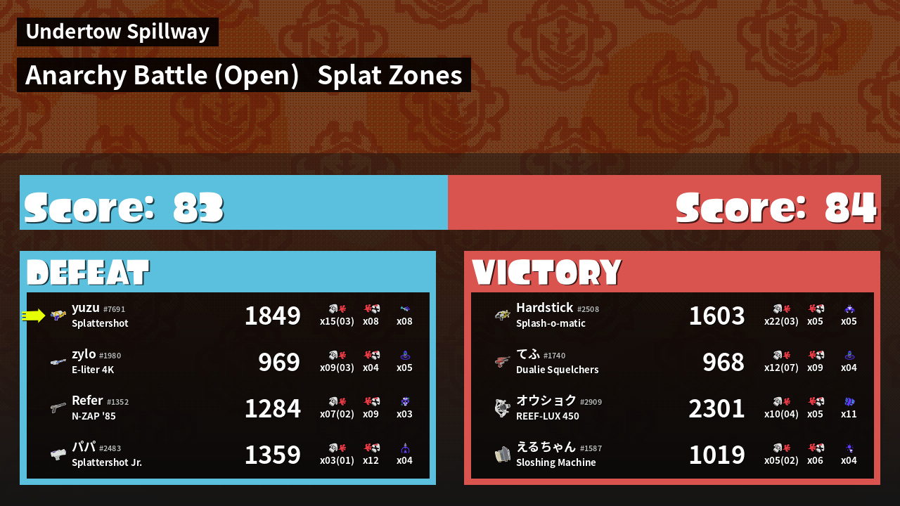| Mode | Splat Zones - Anarchy Battle (Open) | ||