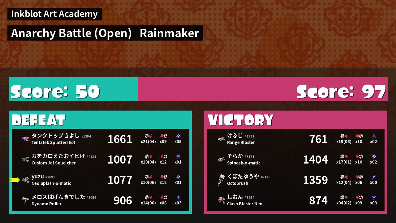 | Mode | Rainmaker - Anarchy Battle (Open) | ||