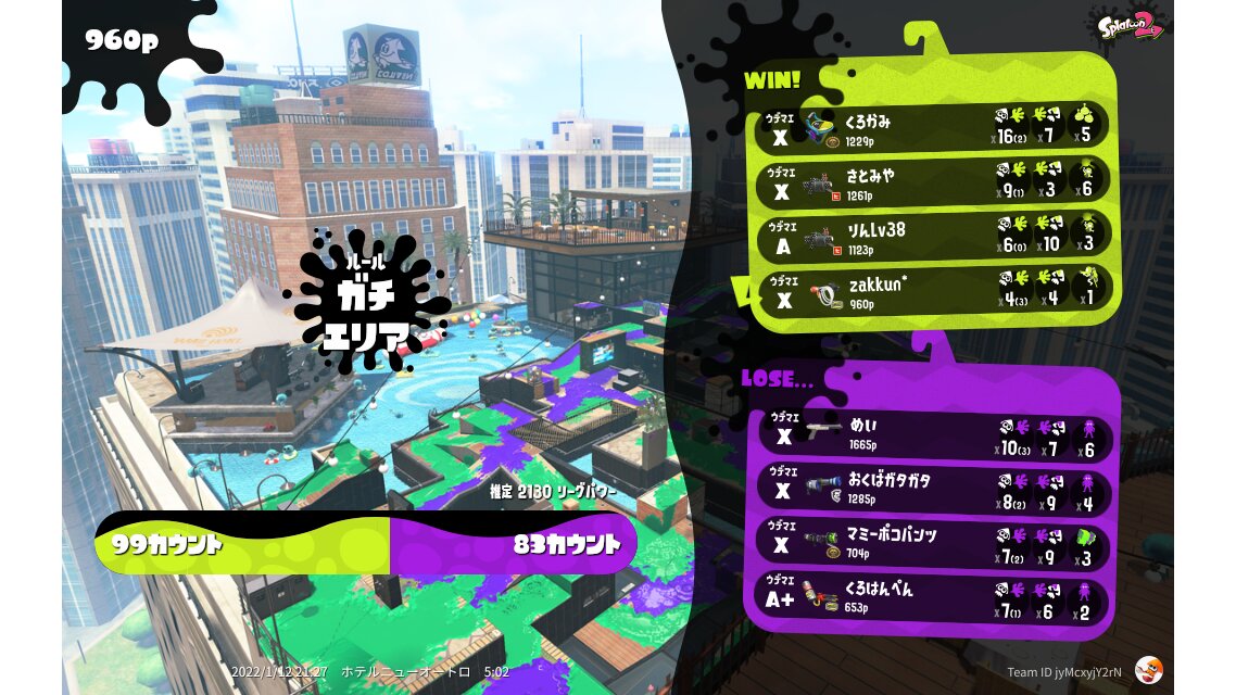 | Mode | Splat Zones - League Battle (Quad) | ||||||||||||||||||||||||||||