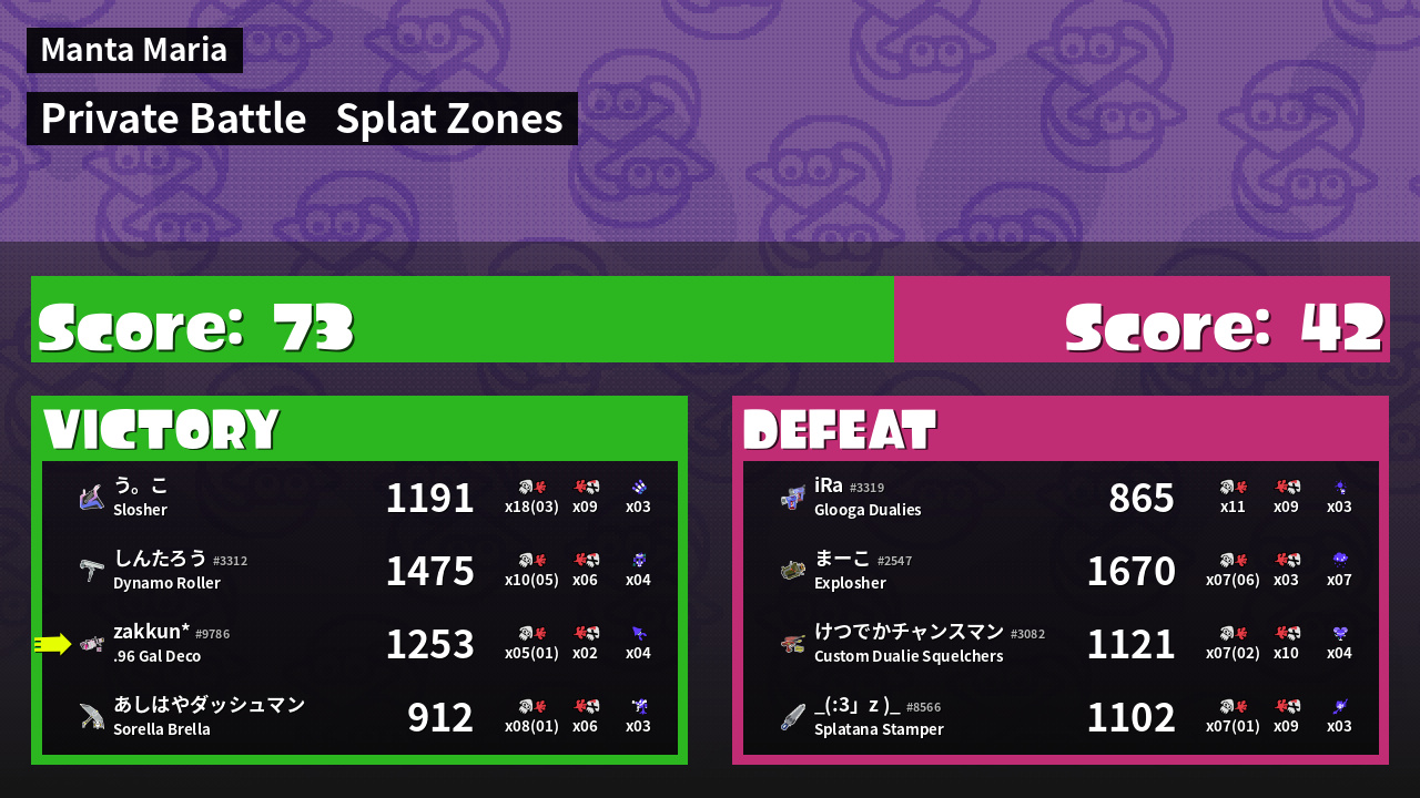 Results of zakkun's Battle