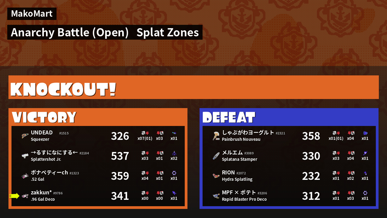 | Mode | Splat Zones - Anarchy Battle (Open) | ||