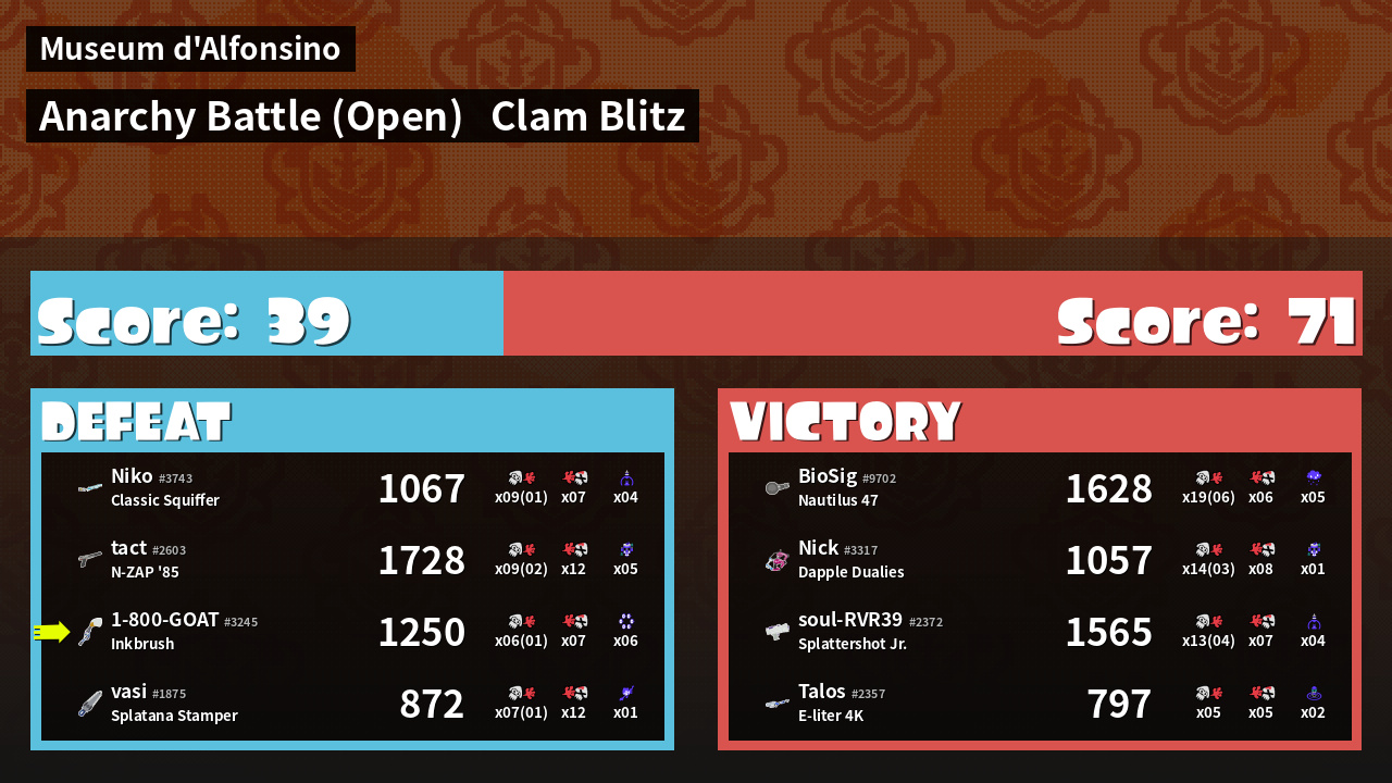 | Mode | Clam Blitz - Anarchy Battle (Open) | ||
