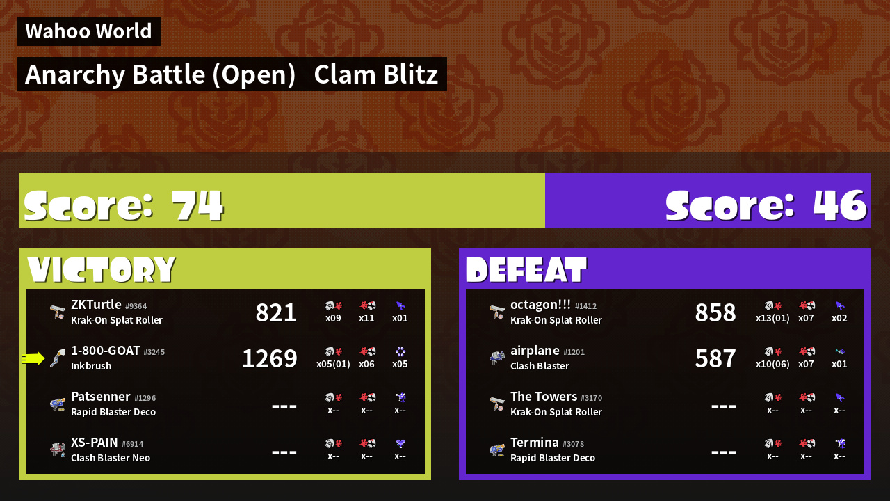 | Mode | Clam Blitz - Anarchy Battle (Open) | ||