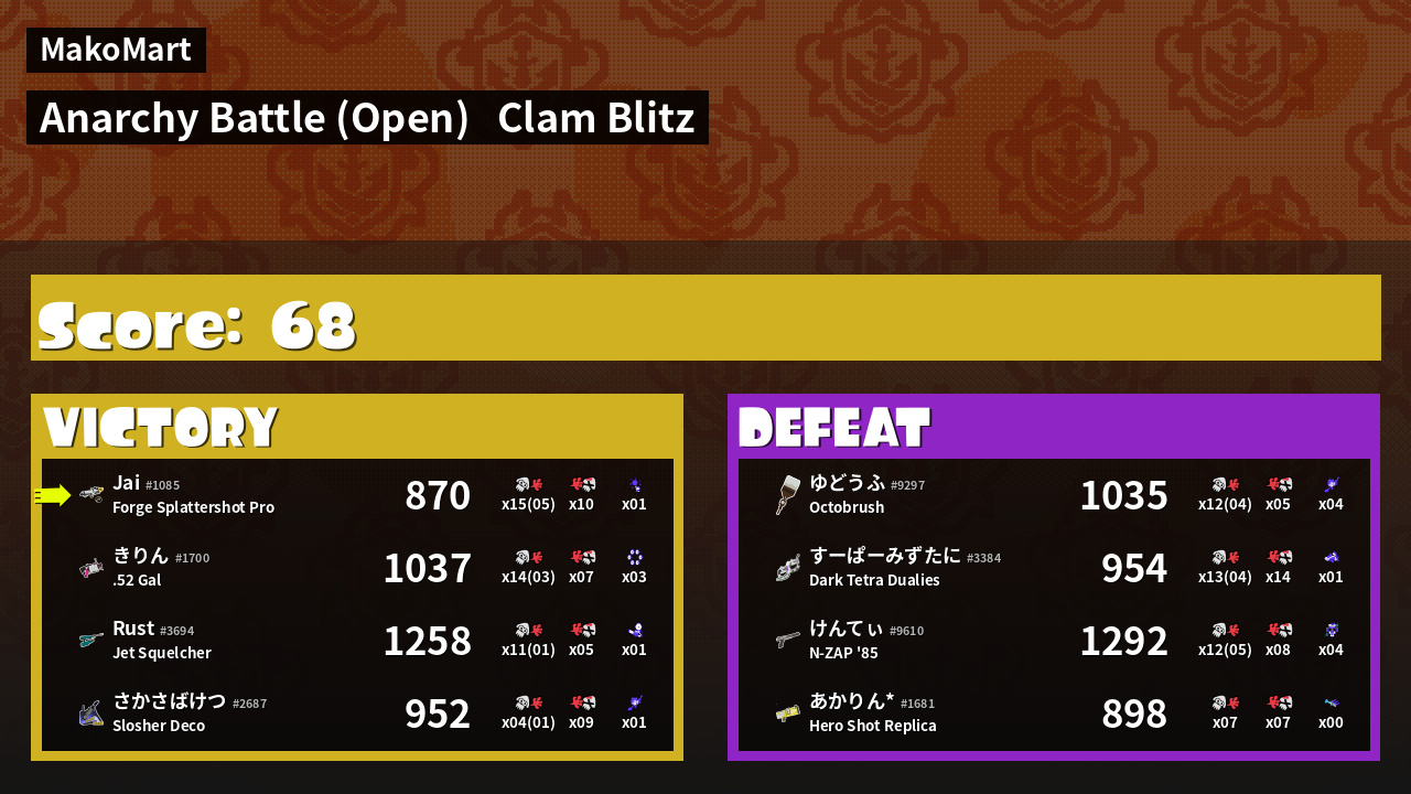 | Mode | Clam Blitz - Anarchy Battle (Open) | ||