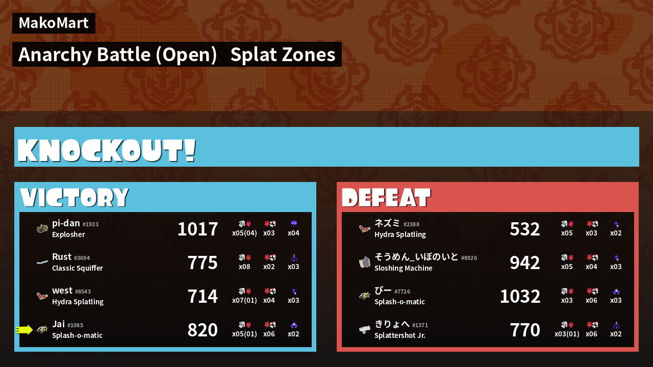 | Mode | Splat Zones - Anarchy Battle (Open) | ||
