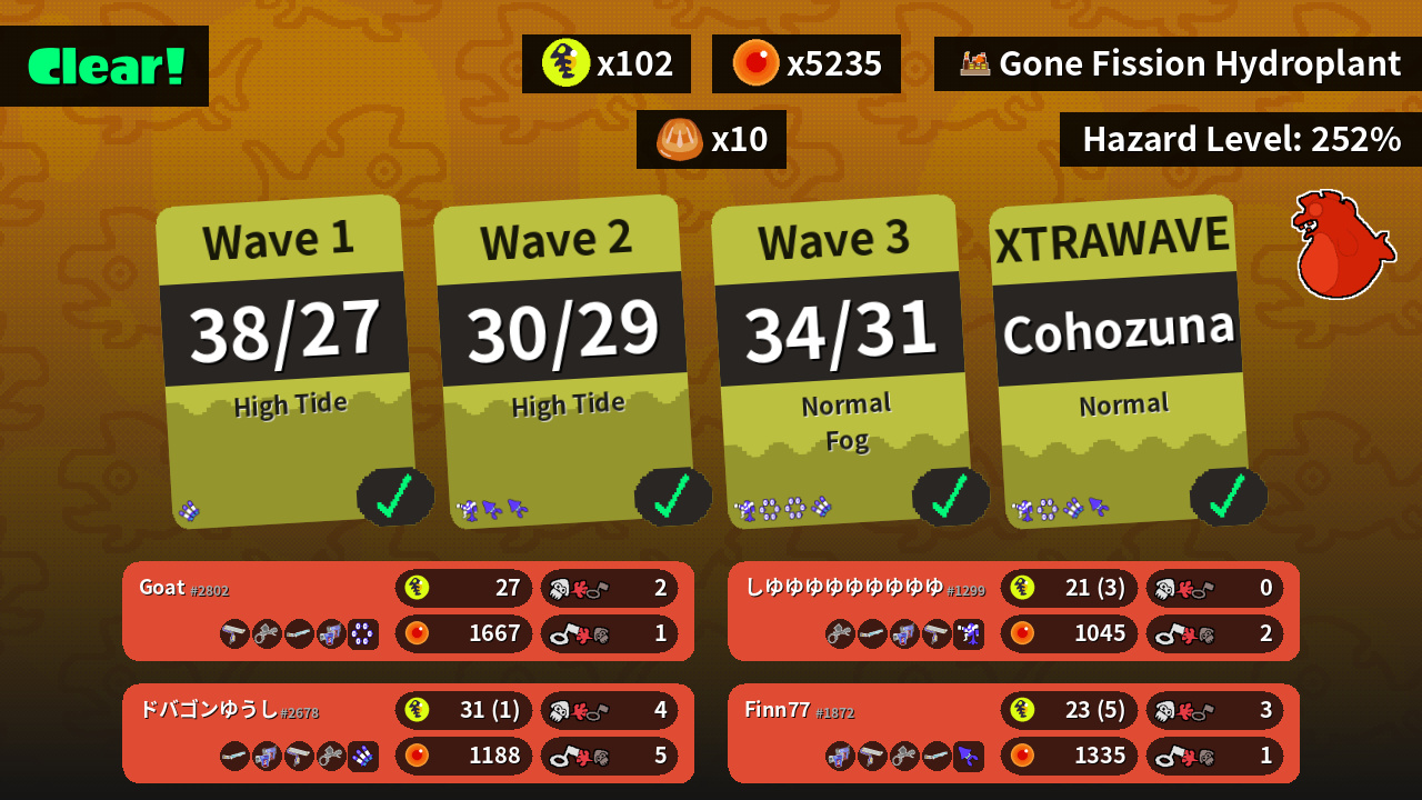 | Boss Salmonid | 33 | 11 | 31 | 13 |