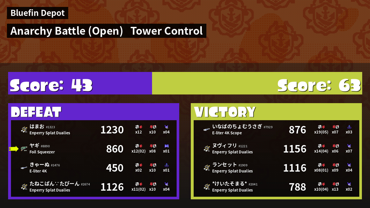 | Mode | Tower Control - Anarchy Battle (Open) | ||