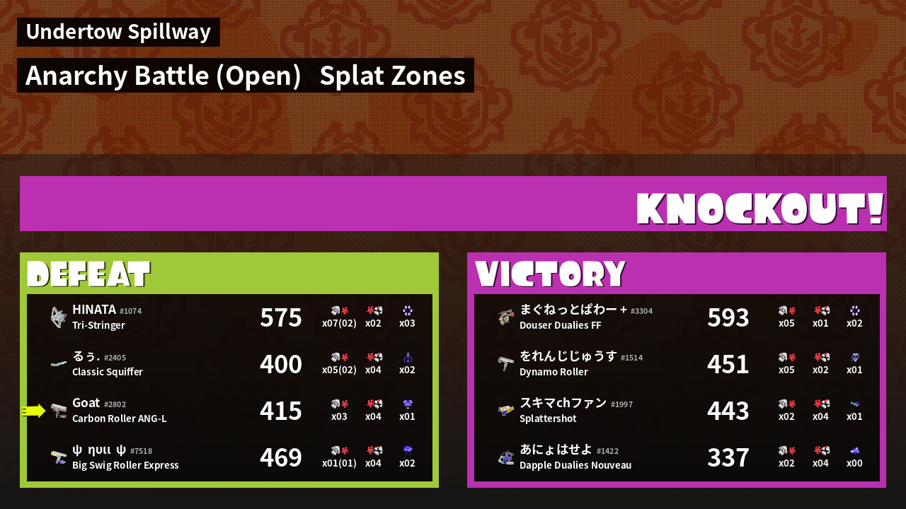 | Mode | Splat Zones - Anarchy Battle (Open) | ||