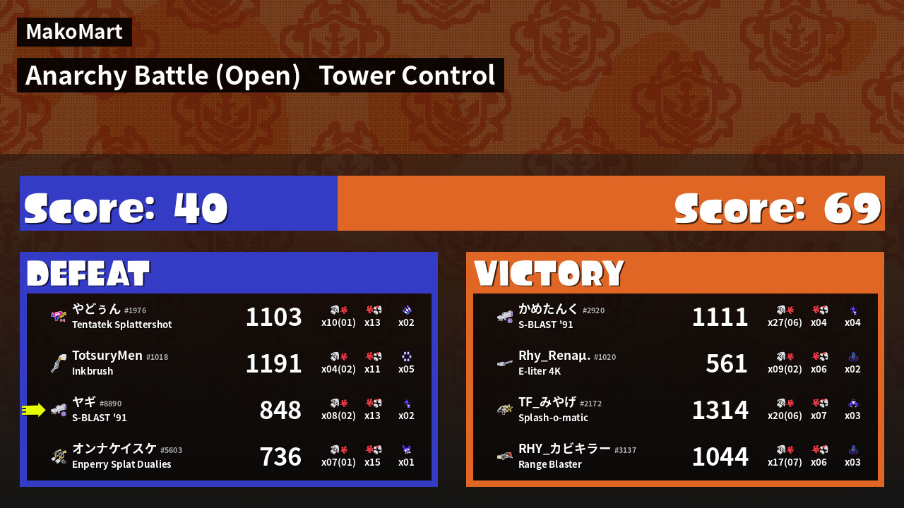 | Mode | Tower Control - Anarchy Battle (Open) | ||