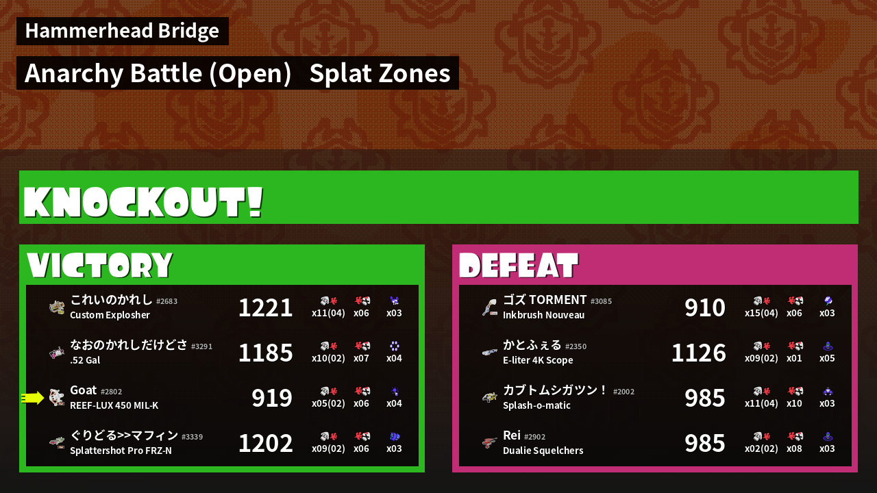 | Mode | Splat Zones - Anarchy Battle (Open) | ||