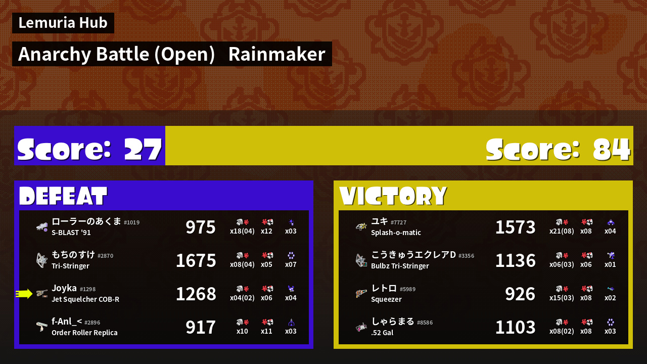 | Mode | Rainmaker - Anarchy Battle (Open) | ||