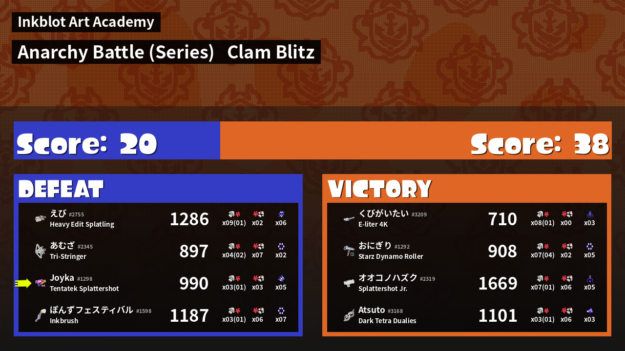 | Mode | Clam Blitz - Anarchy Battle (Series) | ||