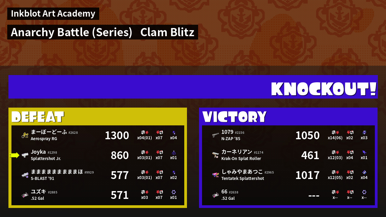 | Mode | Clam Blitz - Anarchy Battle (Series) | ||