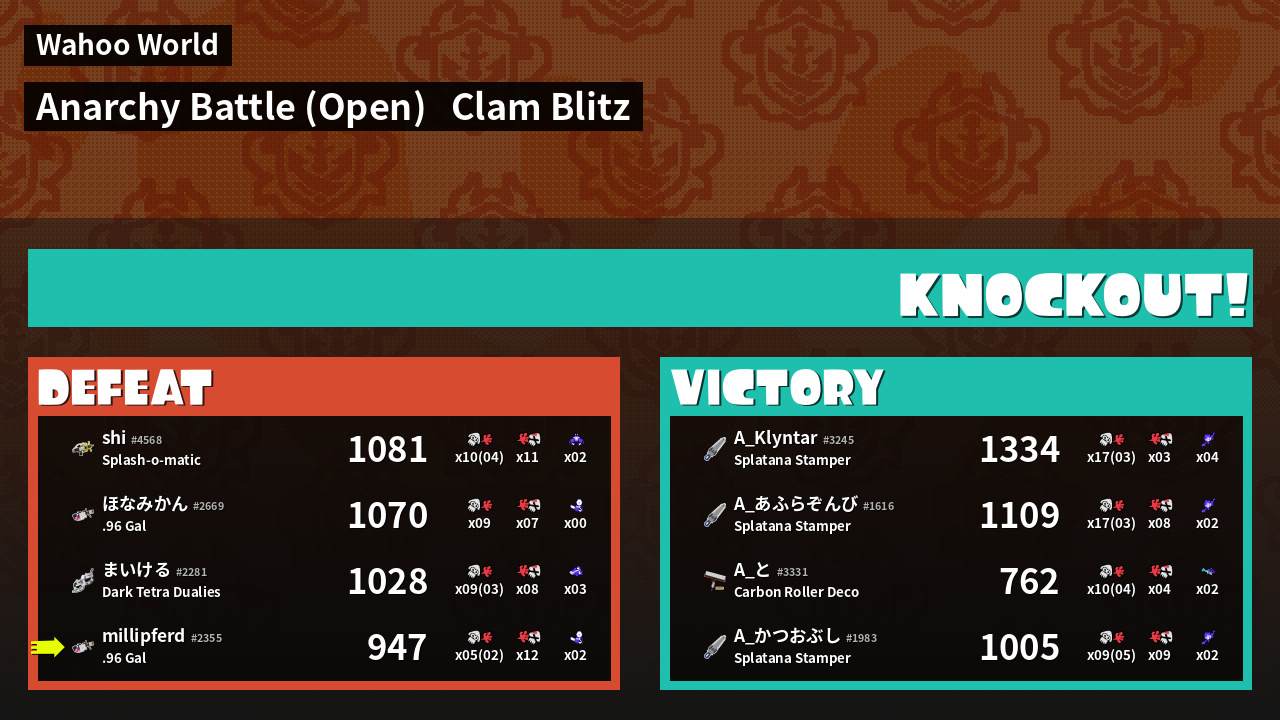 | Mode | Clam Blitz - Anarchy Battle (Open) | ||