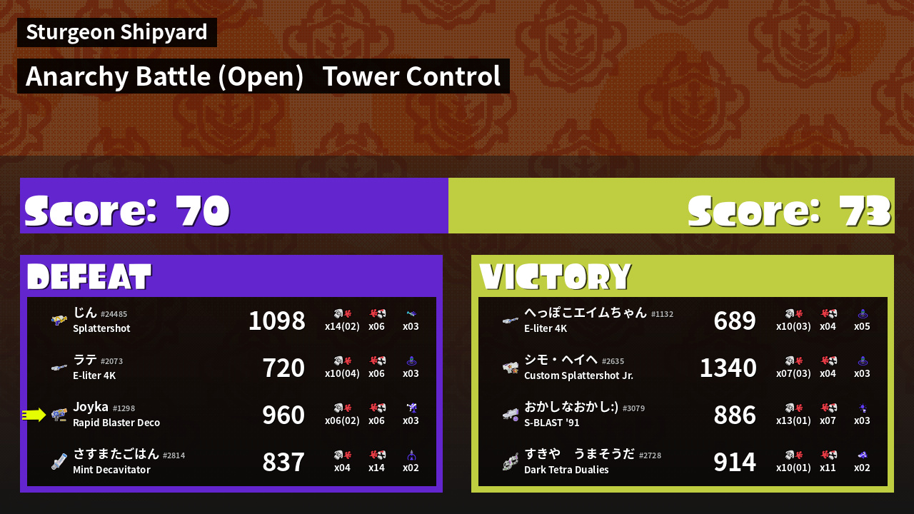 | Mode | Tower Control - Anarchy Battle (Open) | ||