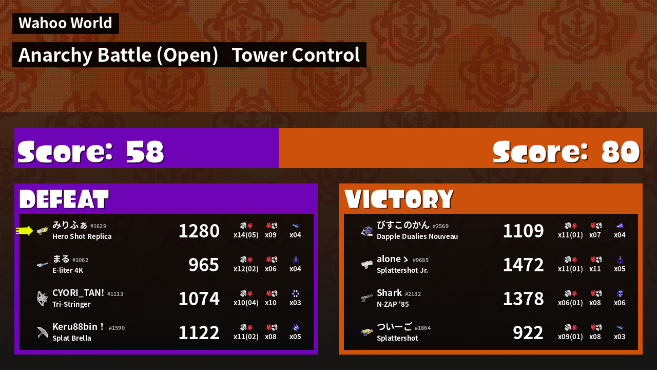 | Mode | Tower Control - Anarchy Battle (Open) | ||