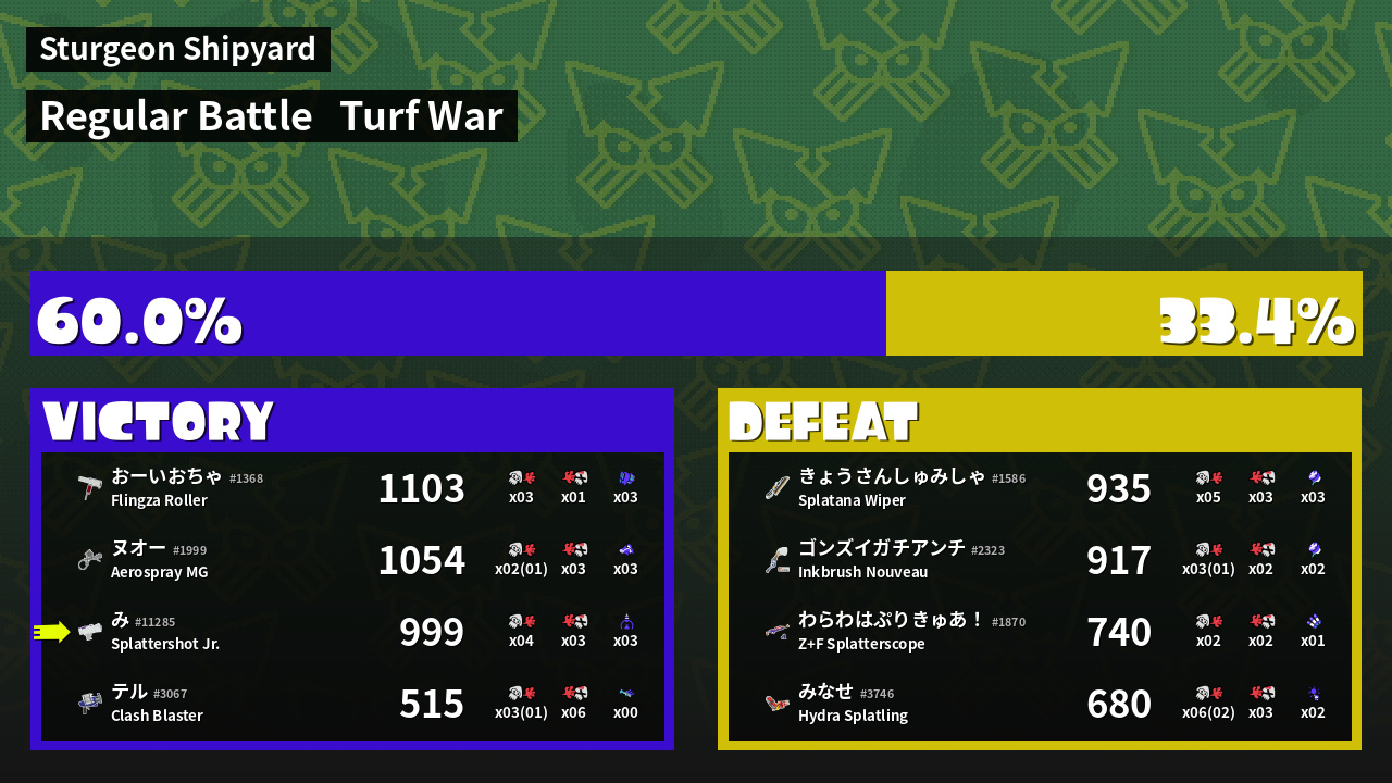 | Medals | #1 Overall Splatter #1 Enemy-Base Inker #1 Enemy Splatter | ||