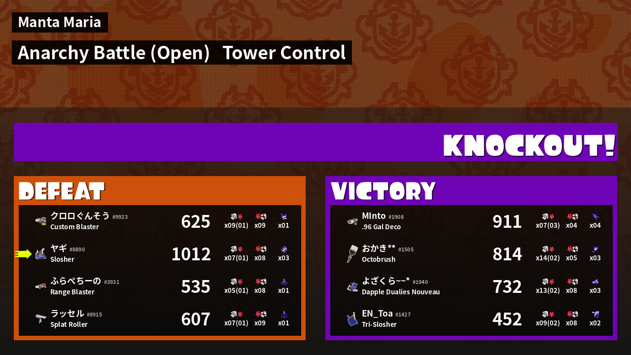 | Mode | Tower Control - Anarchy Battle (Open) | ||