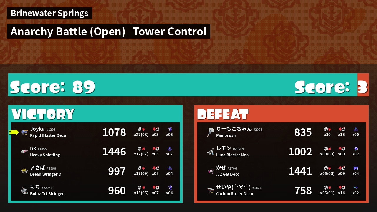 | Mode | Tower Control - Anarchy Battle (Open) | ||