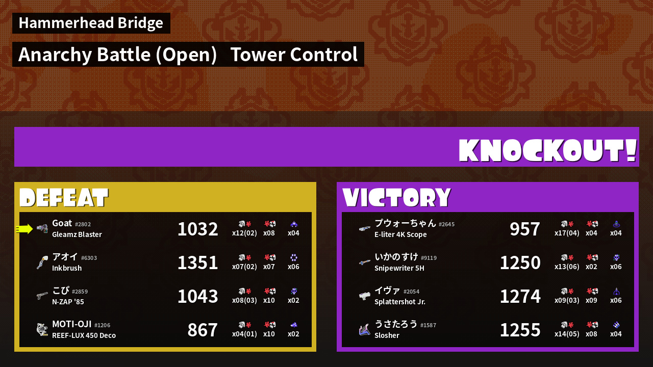 | Mode | Tower Control - Anarchy Battle (Open) | ||