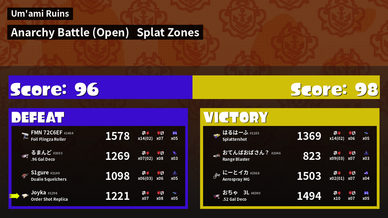 | Mode | Splat Zones - Anarchy Battle (Open) | ||