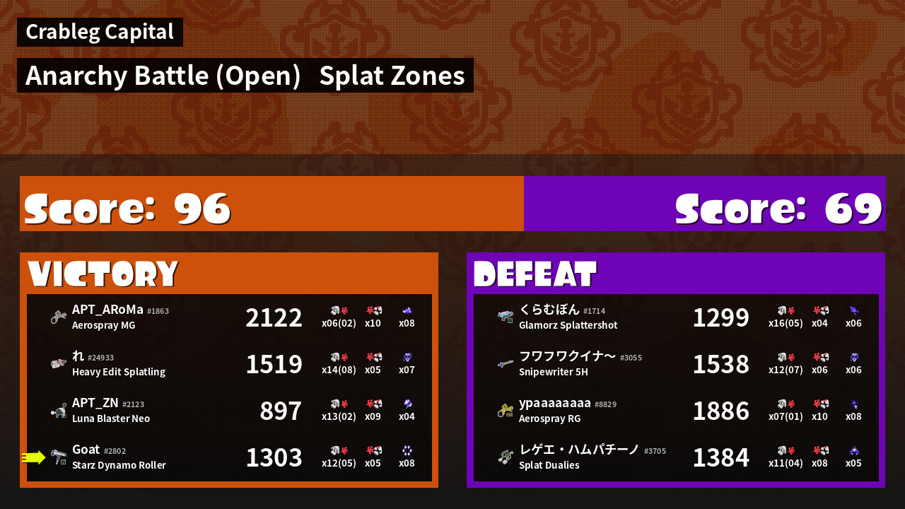 | Mode | Splat Zones - Anarchy Battle (Open) | ||