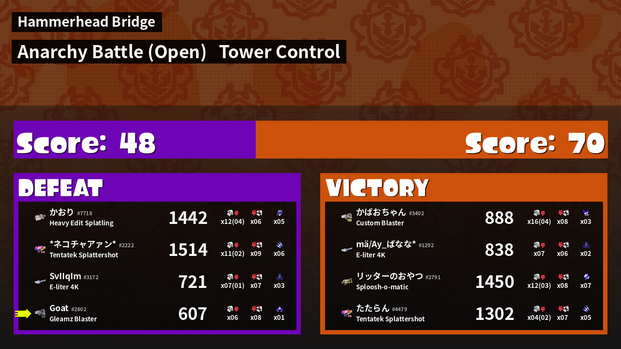 | Mode | Tower Control - Anarchy Battle (Open) | ||