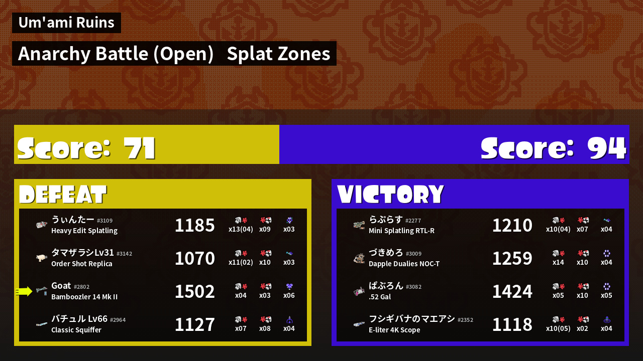 | Mode | Splat Zones - Anarchy Battle (Open) | ||