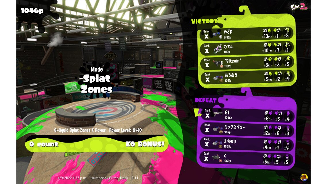 | Mode | Splat Zones - Ranked Battle | ||||||||||||||||||||||||||||||||||||||||||||||