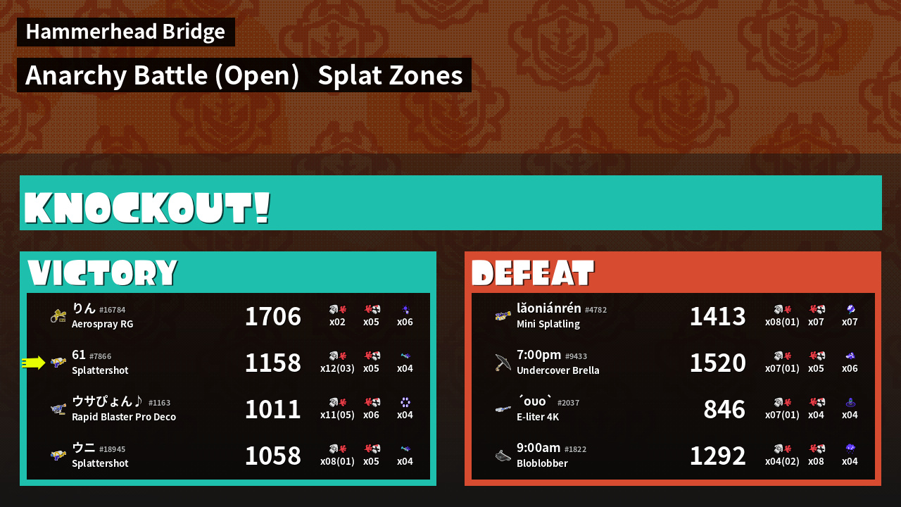 | Mode | Splat Zones - Anarchy Battle (Open) | ||