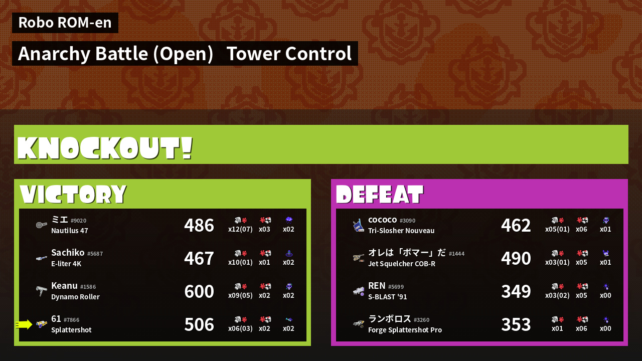 | Mode | Tower Control - Anarchy Battle (Open) | ||